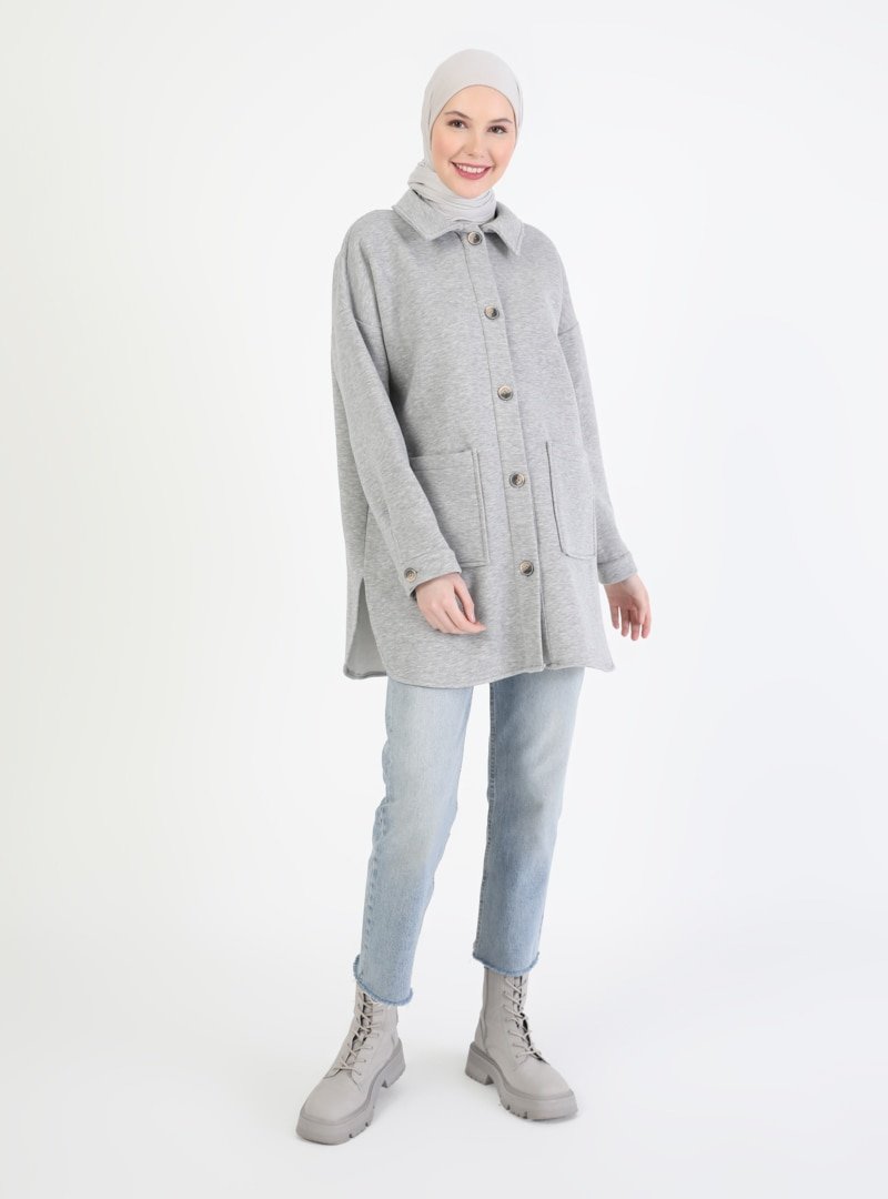 LOREEN Gri Düğme Detaylı Tunik