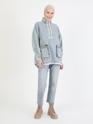 LOREEN Turuncu Cep Detaylı Kot Tunik