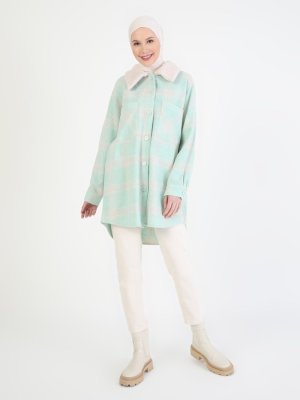 LOREEN Mint Yeşili Yakası Peluş Detaylı Tunik