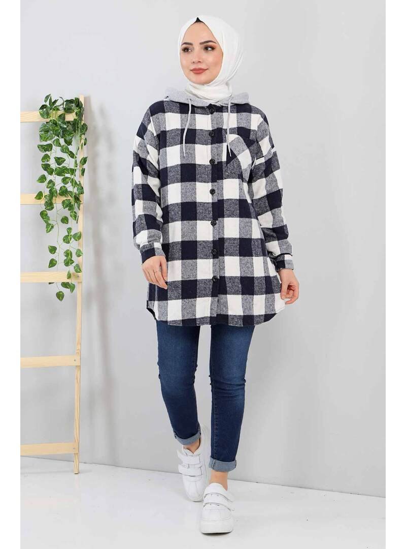 Tesettür Dünyası Lacivert Kapüşonlu Oduncu Gömlek
