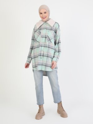 LOREEN Yeşil Yakası Peluş Detaylı Tunik