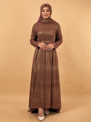 TESETTURİUM Çikolata Işıltılı Pile Abiye Elbise
