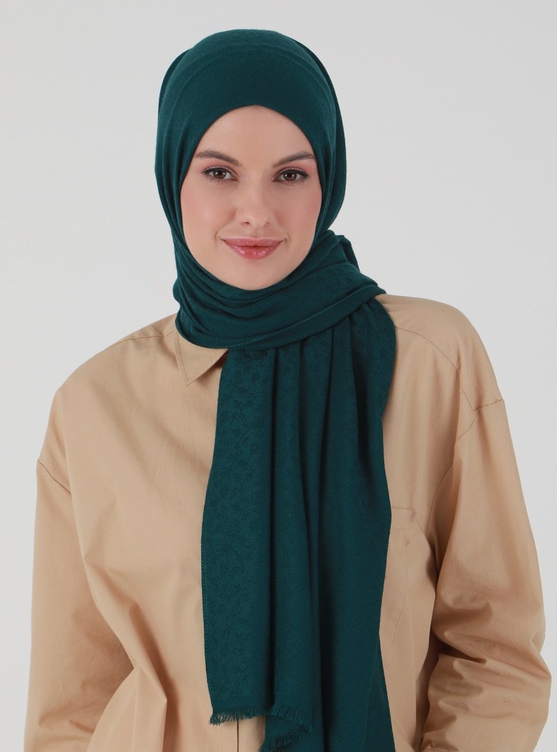 Madame Mary Zümrüt Yeşili Çiçek Desen Jakar Şal