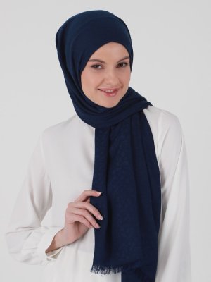 Madame Mary Lacivert Çiçek Desen Jakar Şal