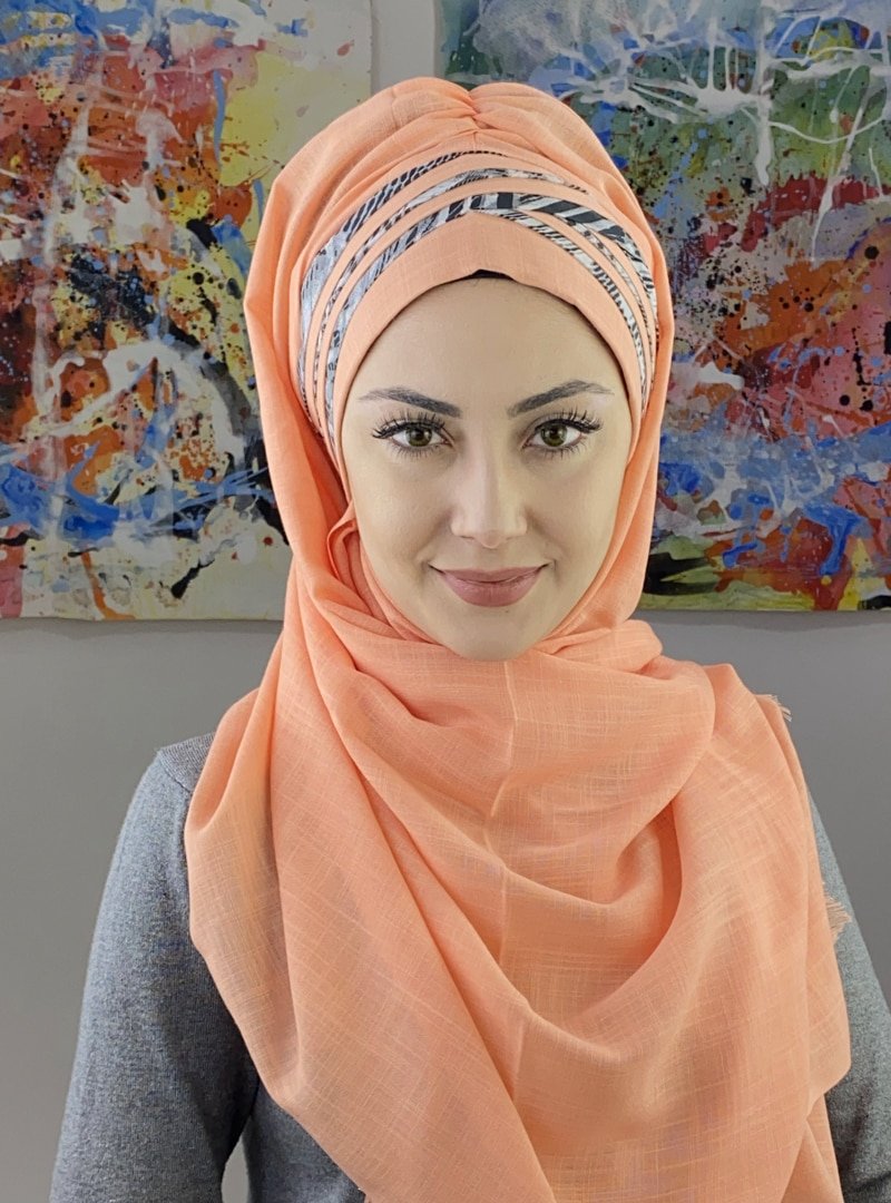 BUTİK AMBAR Somon Geometrik Desenli Çapraz Drapeli Şal