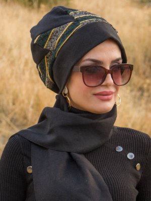 AİŞE TESETTÜR Siyah Çizgi Detay Bere