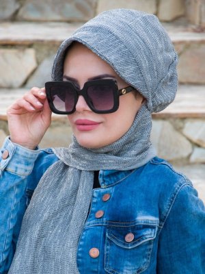 AİŞE TESETTÜR Gri Desenli Atkılı Şapka