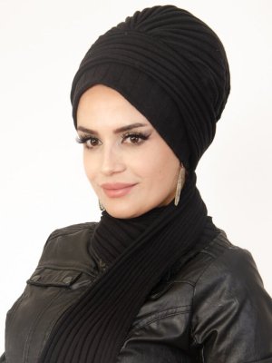 AİŞE TESETTÜR Siyah Fitilli Atkılı Bone