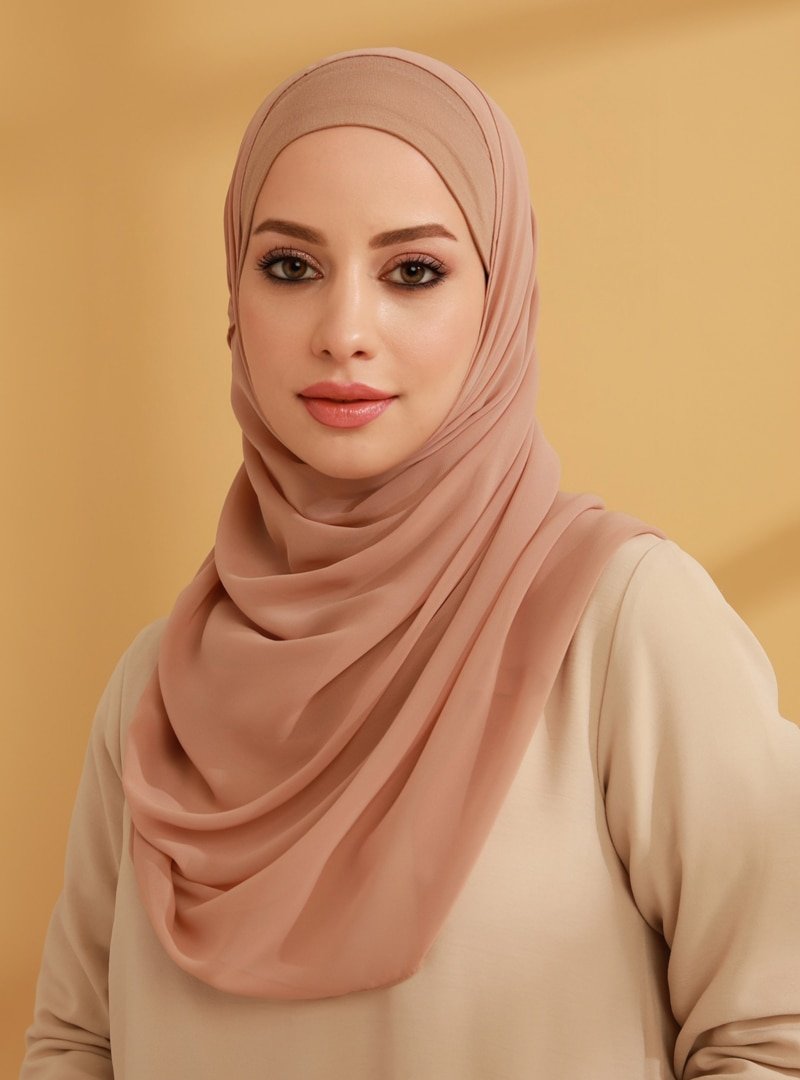 Tuva Koyu Bej İç Boneli Şifon Hazır Türban