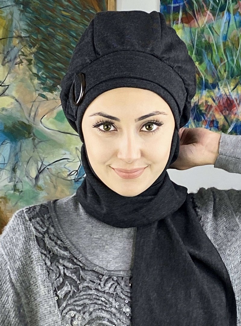 BUTİK AMBAR Füme Asil Model Koyu Tokalı Atkılı Bere Şal
