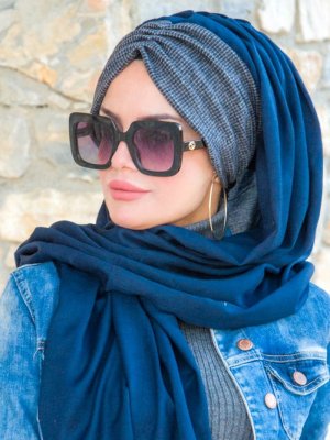 AİŞE TESETTÜR Lacivert Kare Desenli Hazır Şal