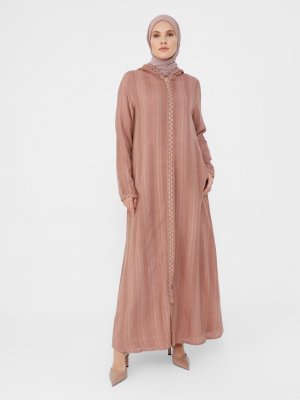 Refka Ağaç Kabuğu Kapüşonlu Hasır Detaylı Ferace Kap