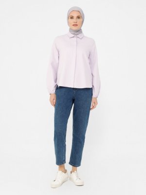 Refka Açık Lila Gizli Düğmeli Poplin Gömlek