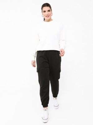 Alia Siyah Büyük Beden Cep Detaylı Beli Lastikli Pantolon