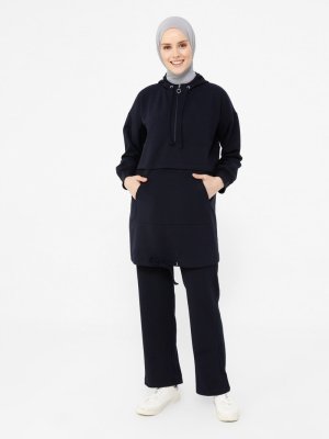 Refka Lacivert Scuba Crep Tunik & Pantolon İkili Takım