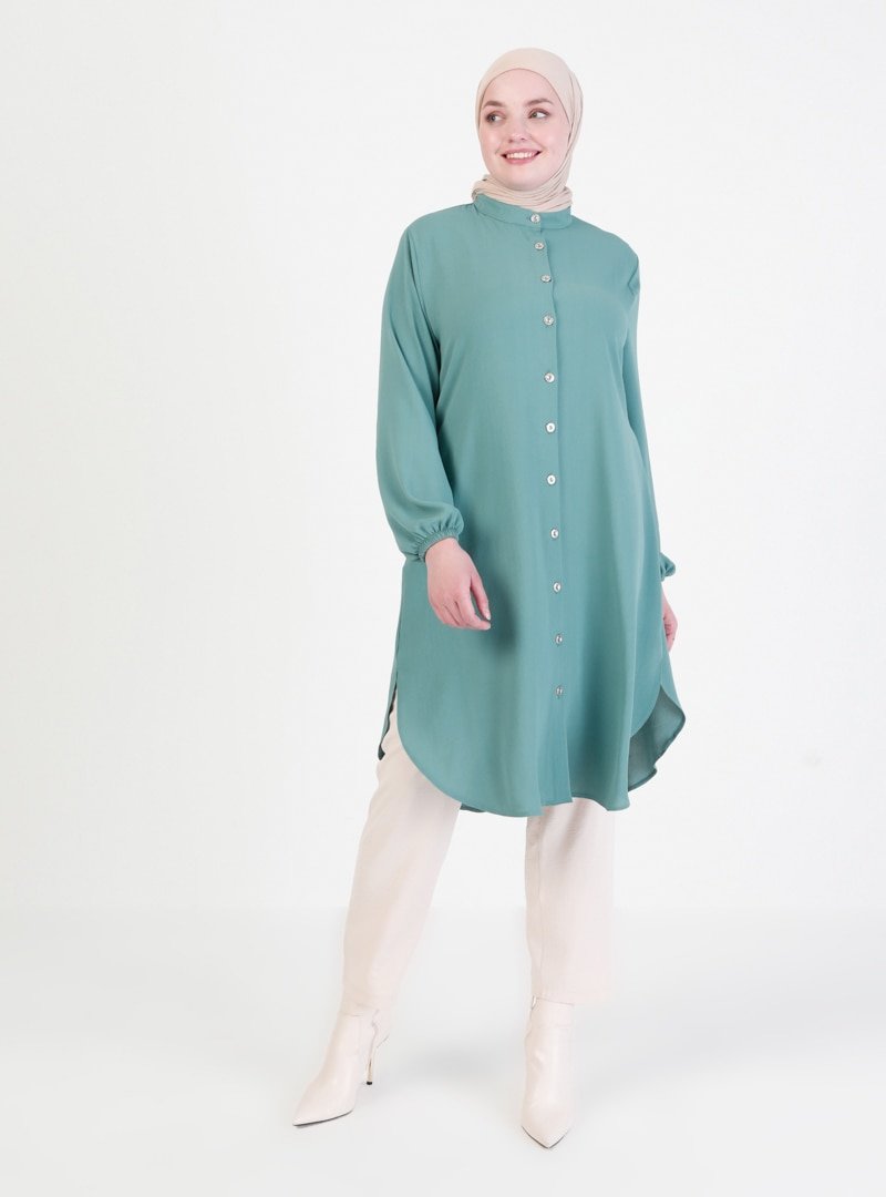 Butik Miray Çağla Yeşili Düğme Detaylı Tunik
