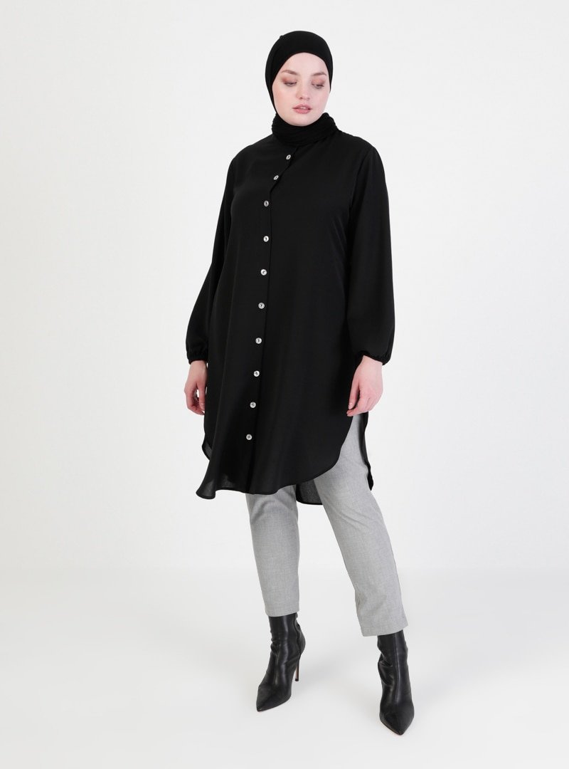 Butik Miray Siyah Düğme Detaylı Tunik