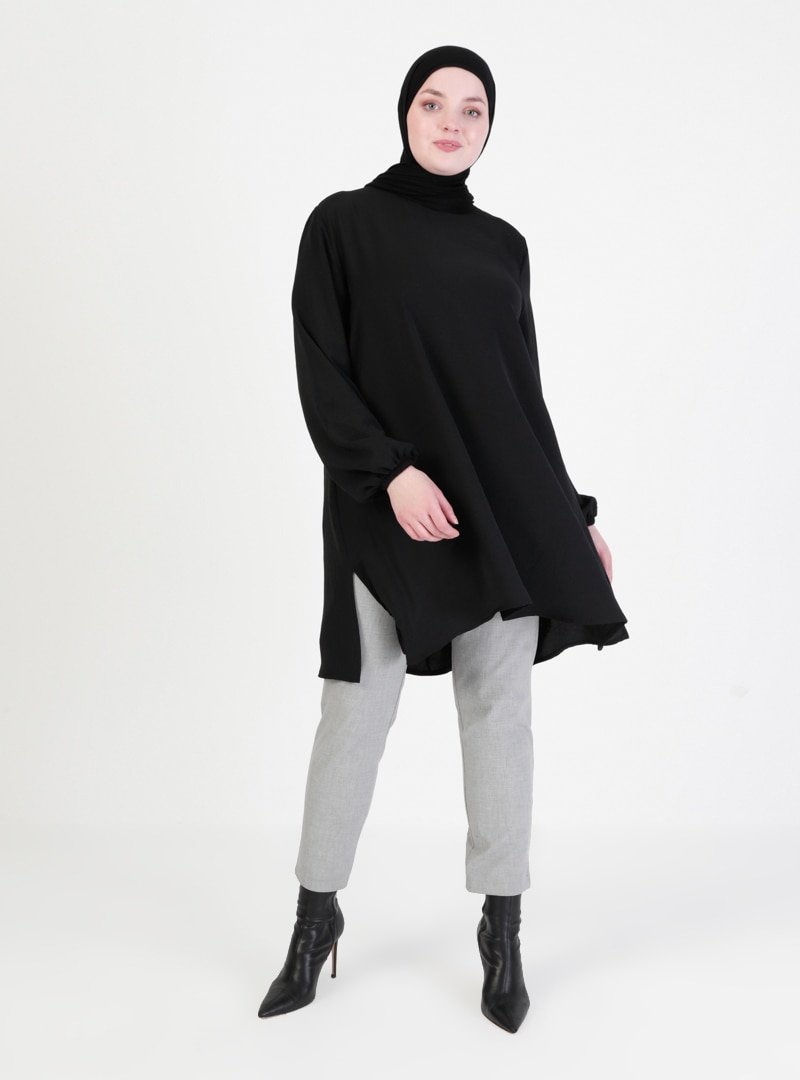Butik Miray Siyah Kol Uçları Lastikli Tunik