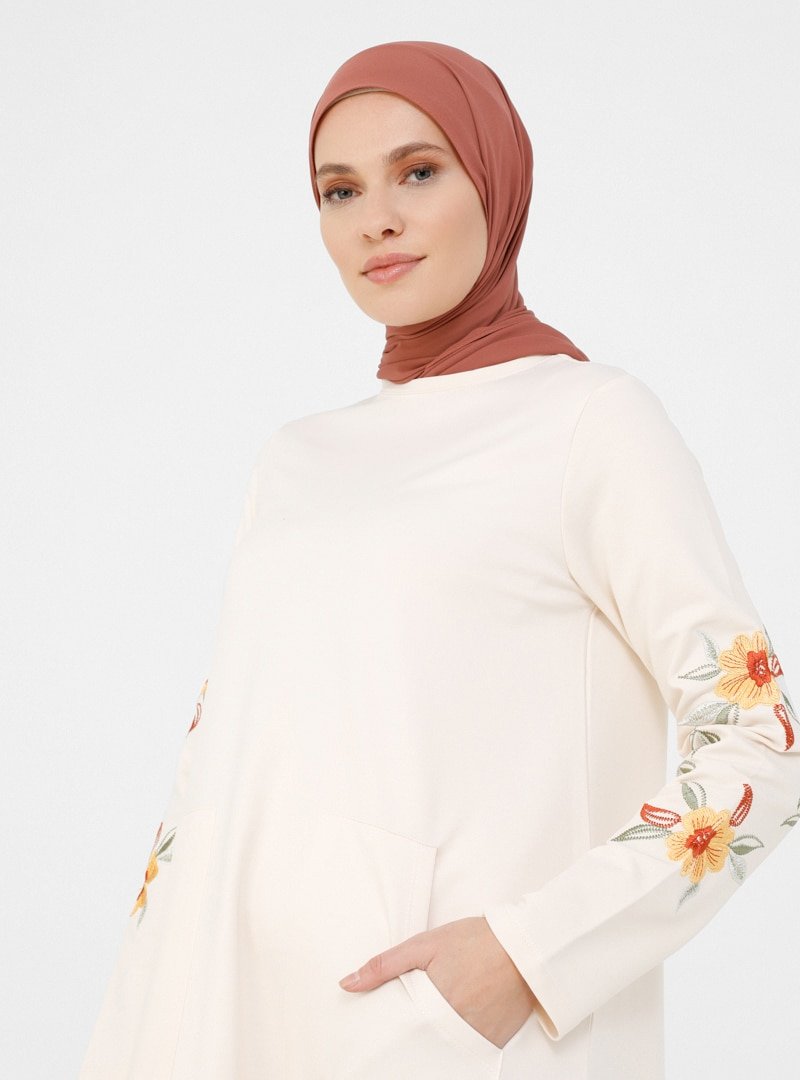 Refka Deniz Kabuğu Kolları Nakış Detaylı Elbise