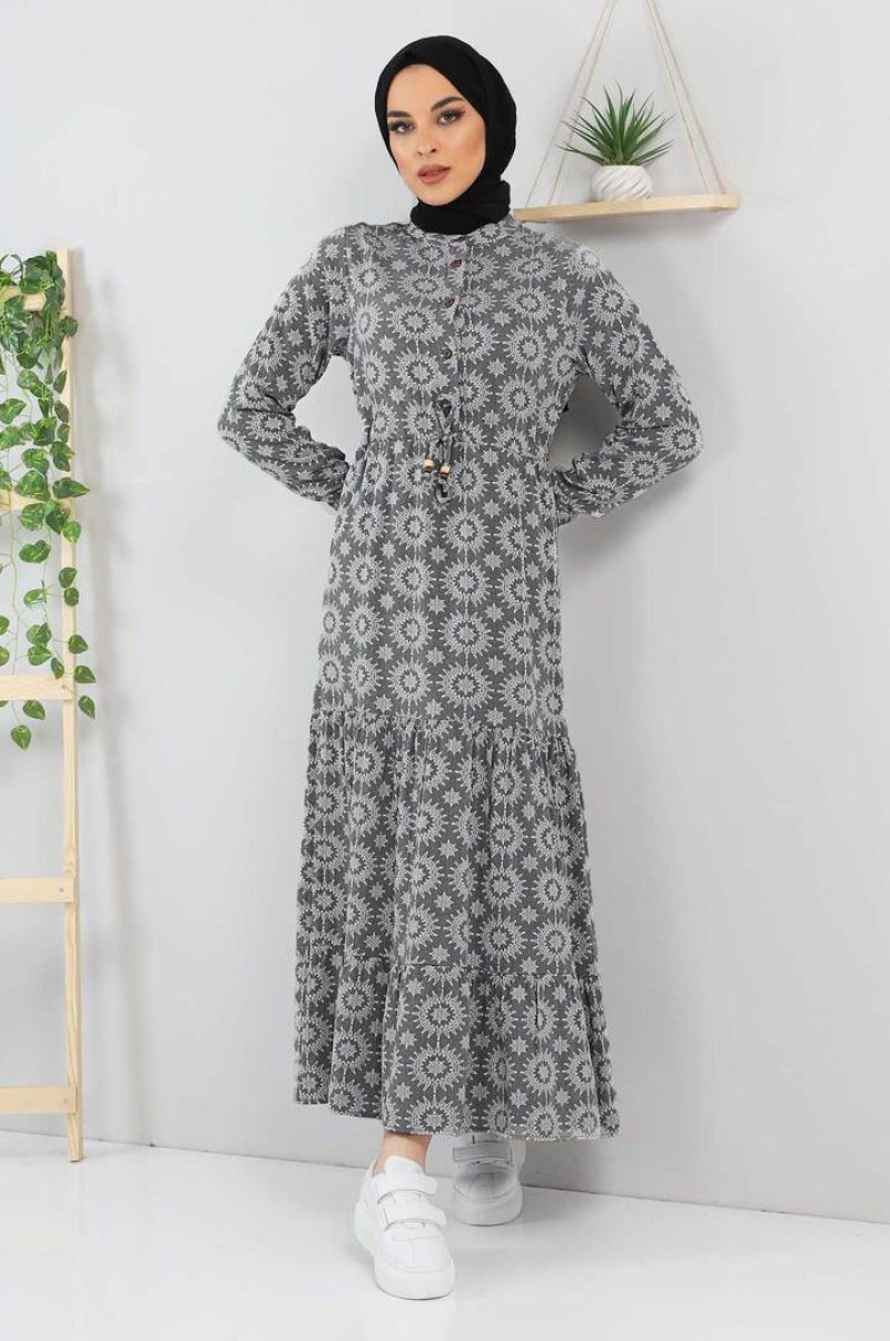 Tesettür Dünyası Gri Desenli Elbise