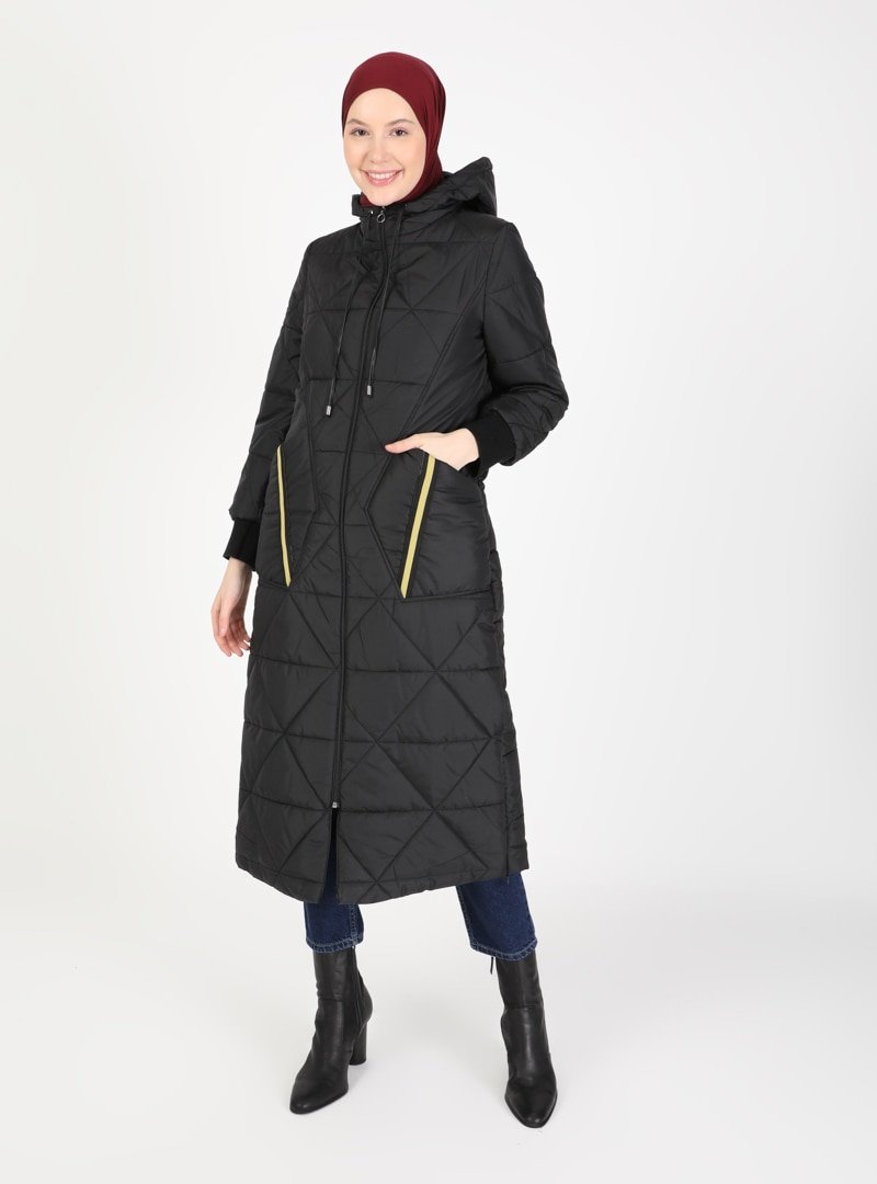 Olcay Siyah Kapüşonlu Üçgen Mont