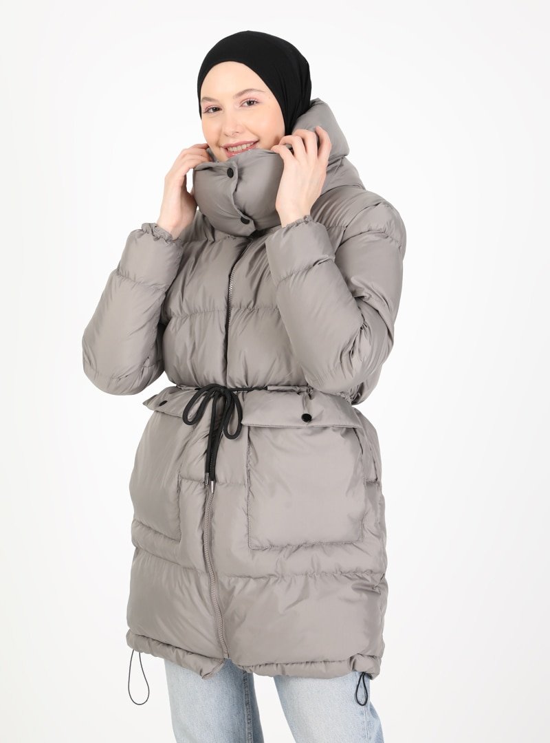 Olcay Gri Concept By Kapüşonlu Şişme Kaban