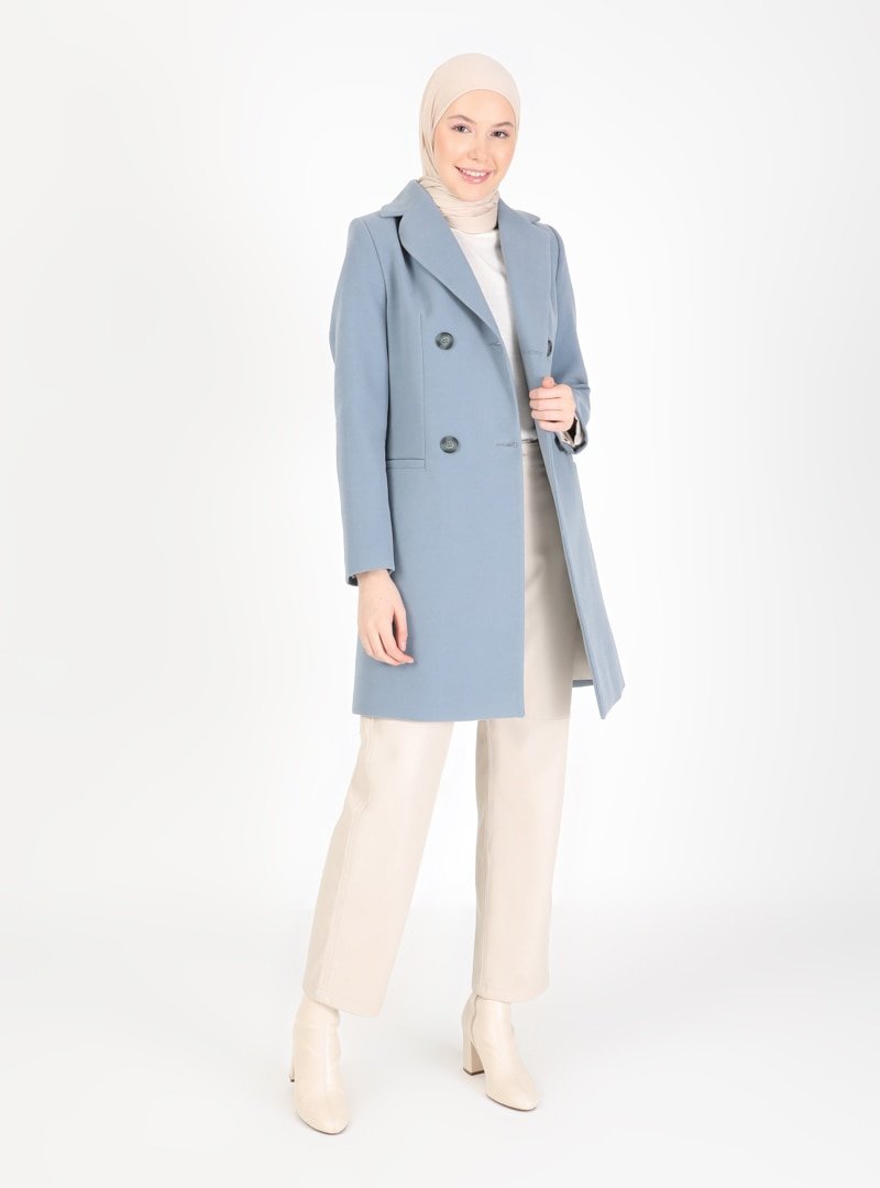 Concept By Olcay Mavi Düğme Detaylı Kaban