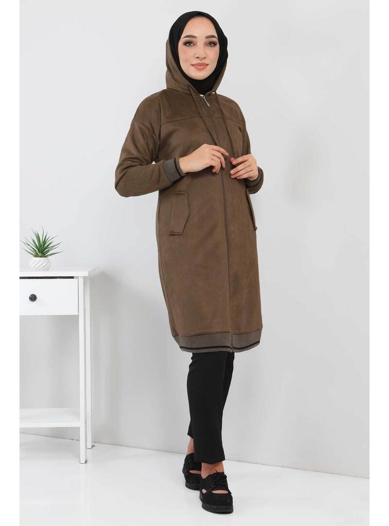 Tesettür Dünyası Haki Ribanalı Süet Kap