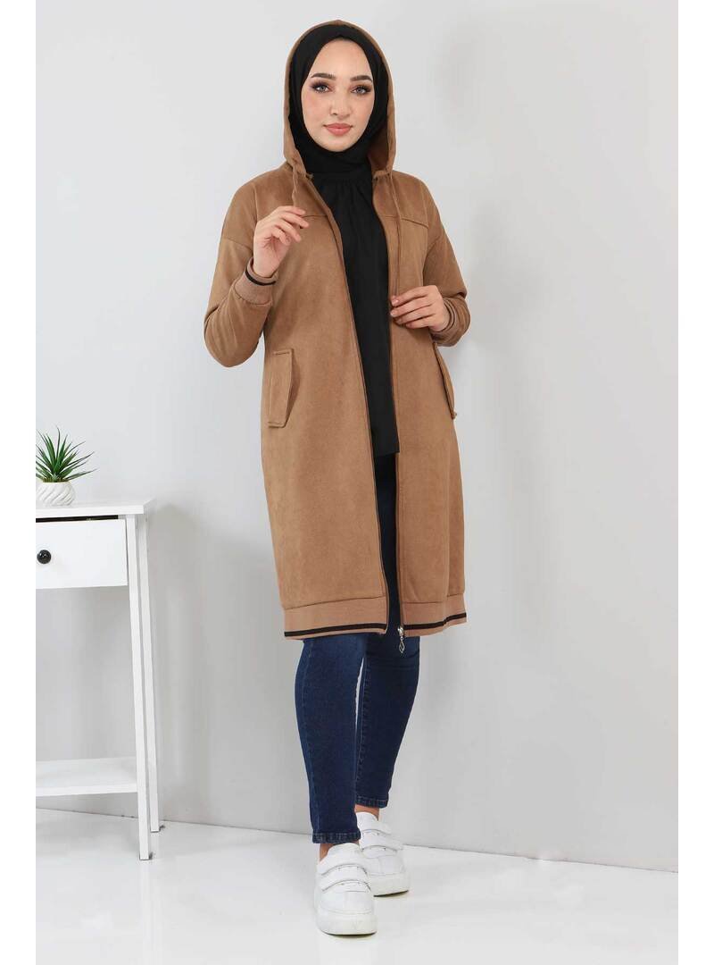 Tesettür Dünyası Camel Ribanalı Süet Kap