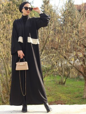 Merve Aydın Siyah Dantel Detaylı Ferace