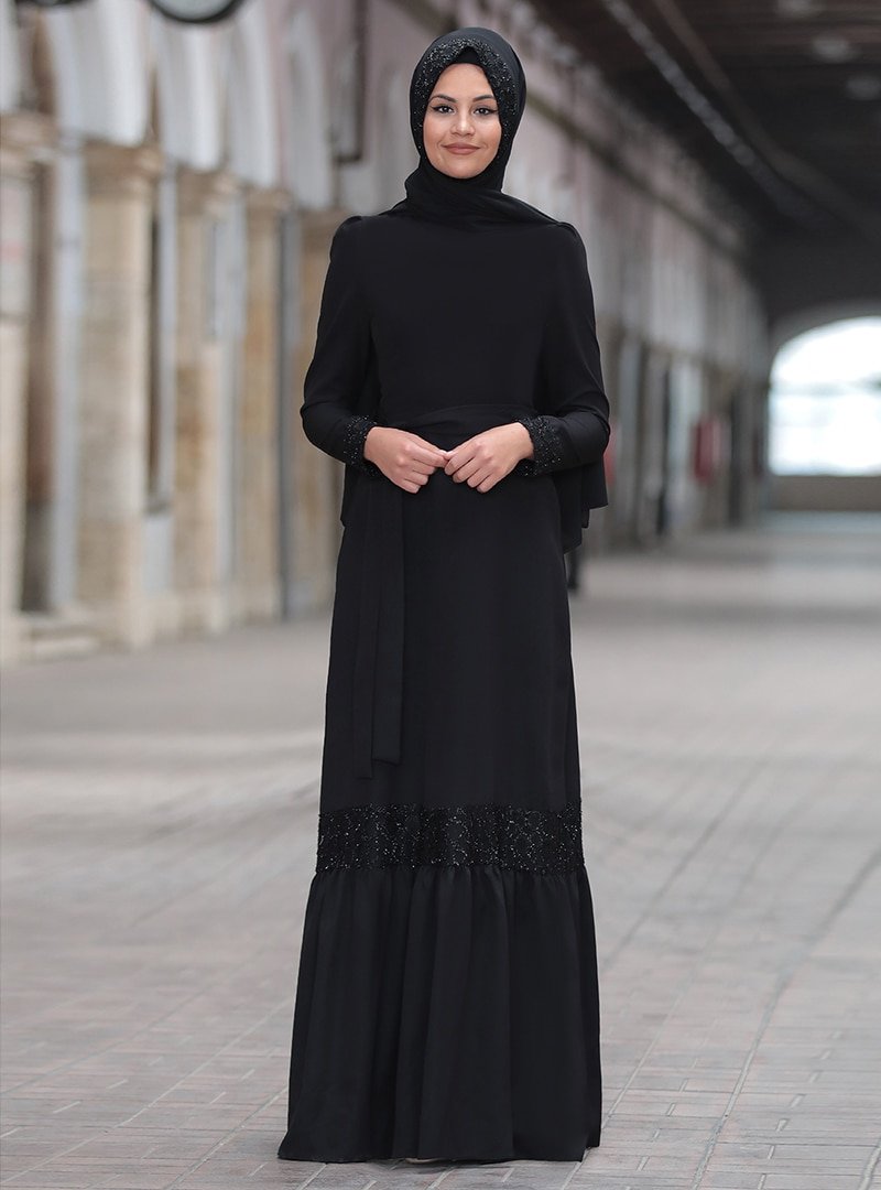 Sure Siyah Buket Abiye Elbise
