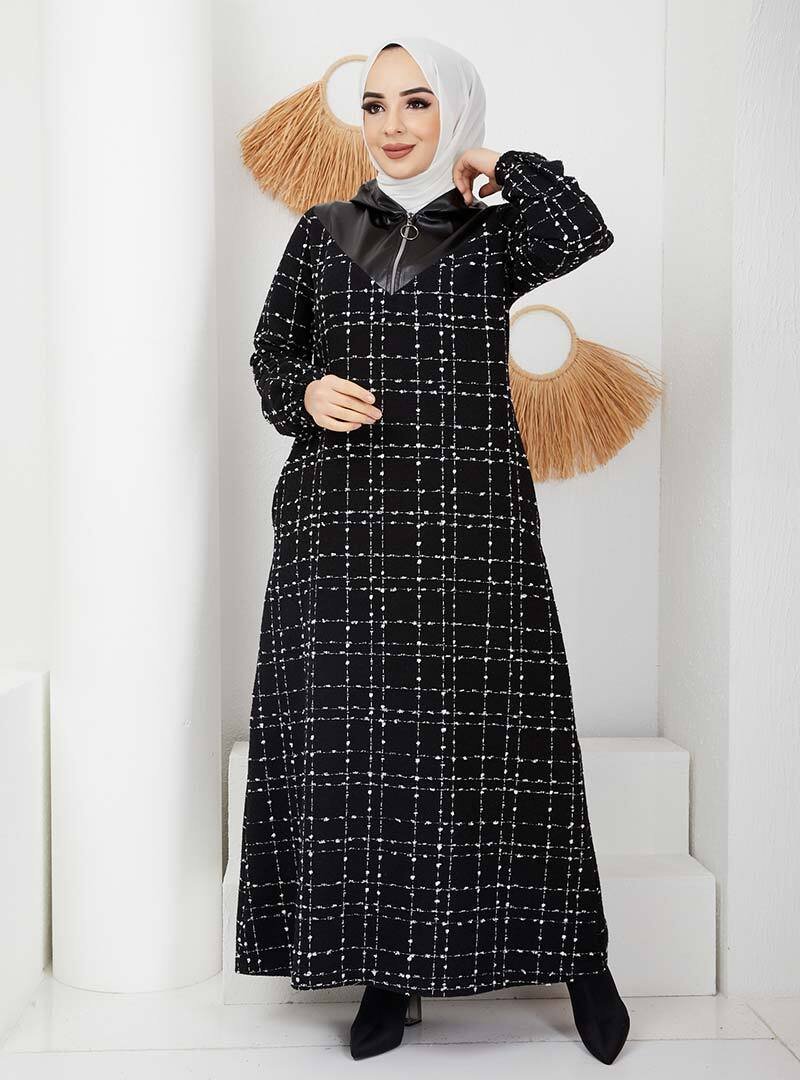 HAKİMODA Siyah Kelebek Desenli Fermuarlı Elbise