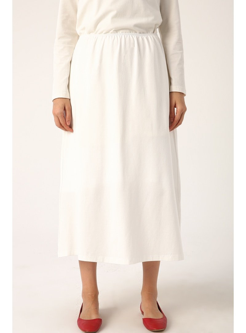 Allday Ekru Yırtmaçlı Uzun Penye Etek Astar