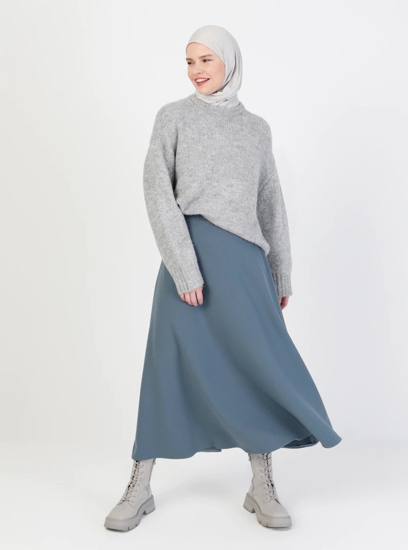 ONX10 Koyu İndigo Kloş Etek