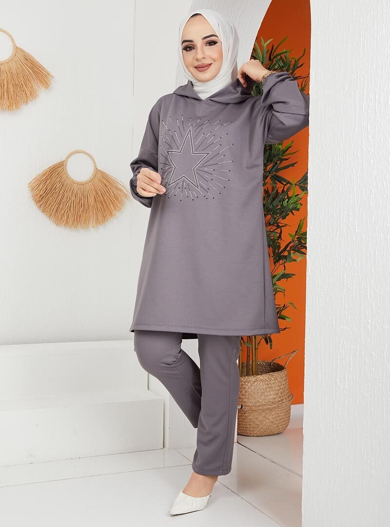 HAKİMODA Gri Yıldız Baskılı Kombin