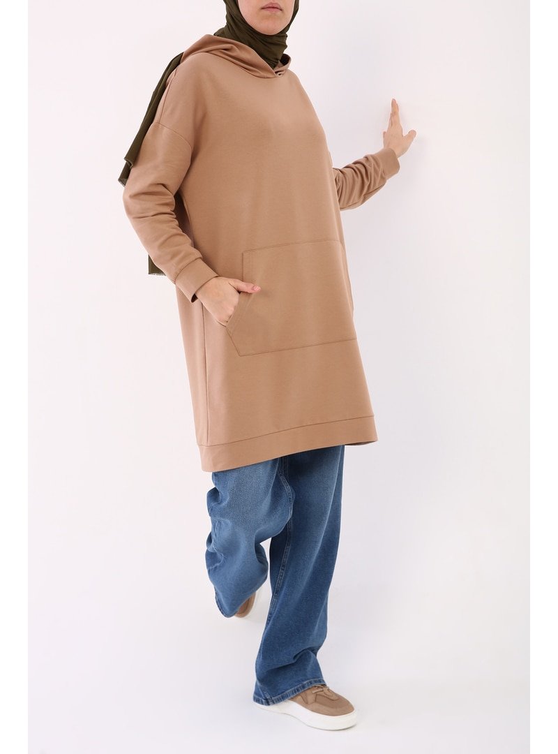 Allday Bisküvi Kanguru Cepli Kapüşonlu Sweat Tunik