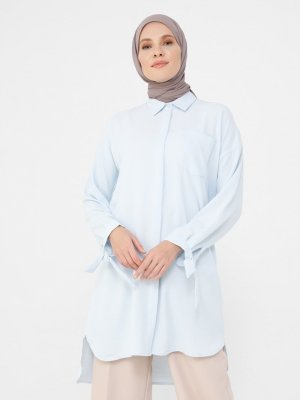 Refka Gök Mavisi Bağlama Detaylı Arkası Uzun Tunik