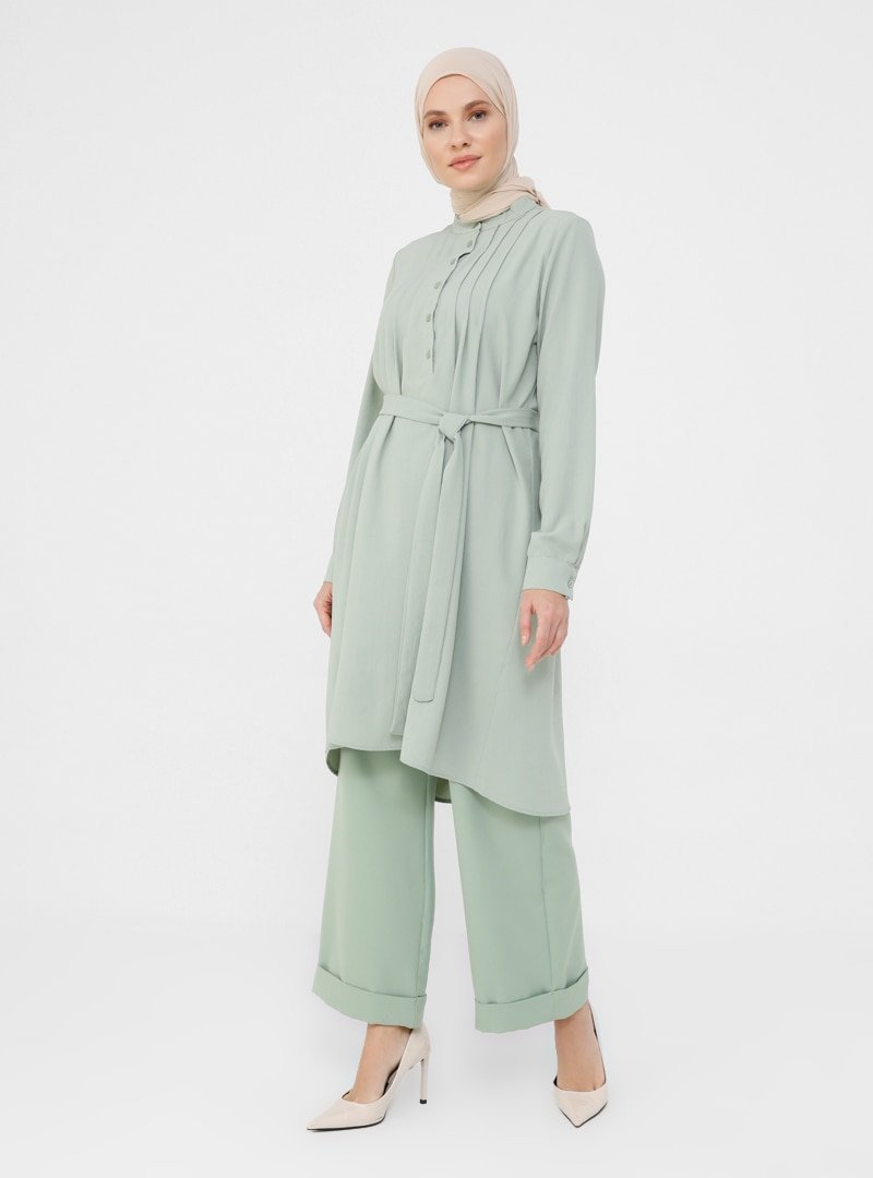 Refka Mint Nervür Detaylı Kuşaklı Aerobin Tunik
