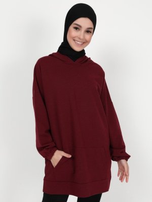 Tofisa Koyu Bordo Kapüşonlu Sweatshirt