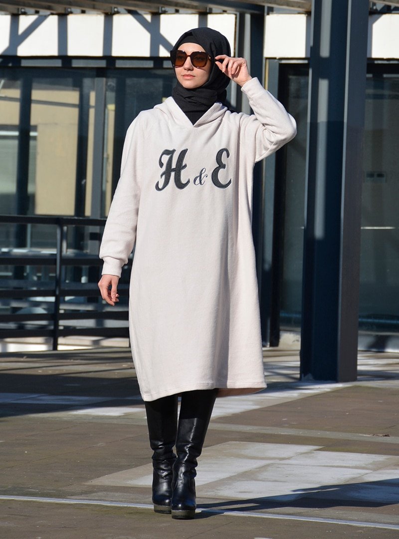 Henna Elısa Ekru Kapüşonlu Spor Tunik