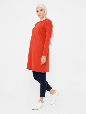 Refka Kiremit Pamuk Kumaşlı Bisiklet Yaka Tunik