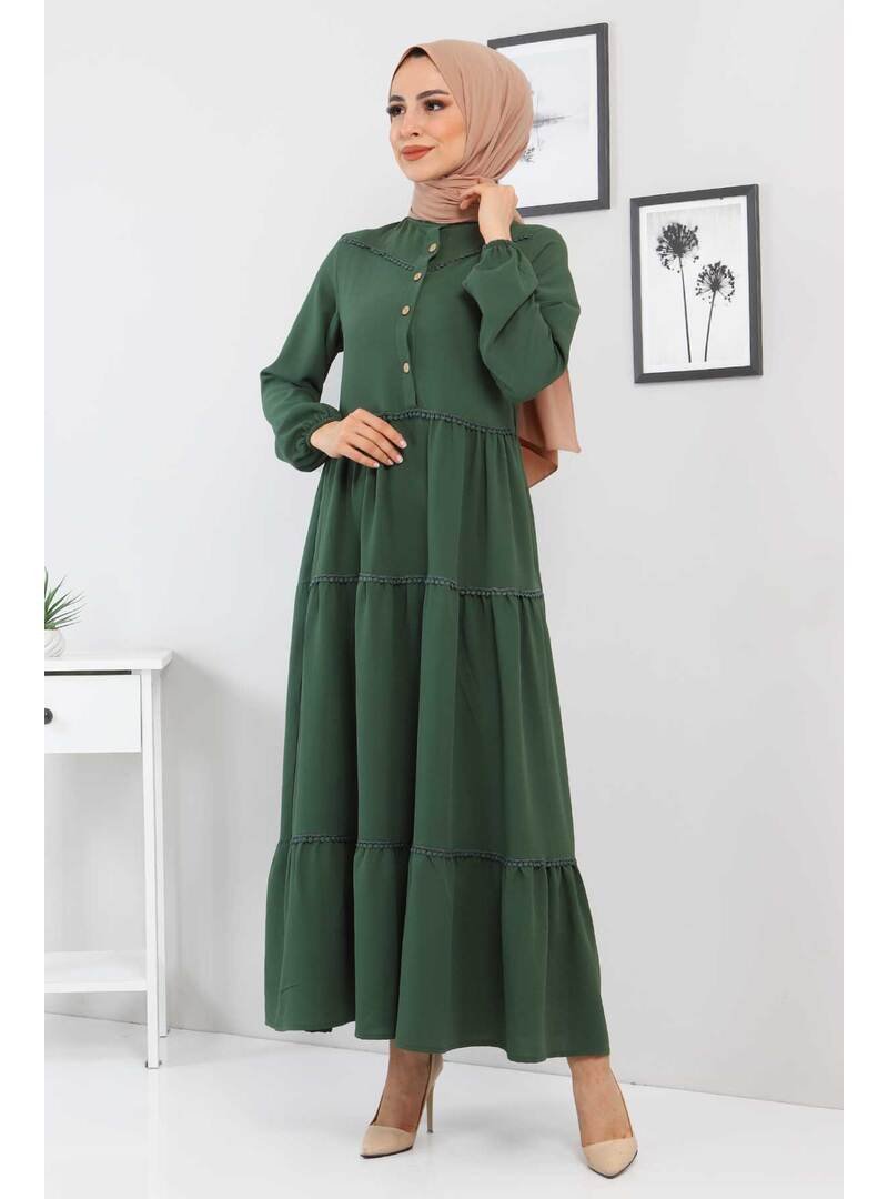 Tesettür Dünyası Yeşil Dantel Detaylı Elbise