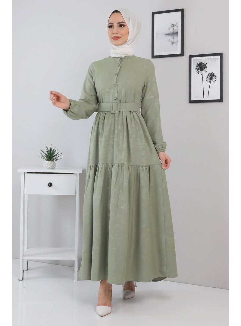 MISSVALLE Yeşil Yakma Desenli Fırfırlı Elbise