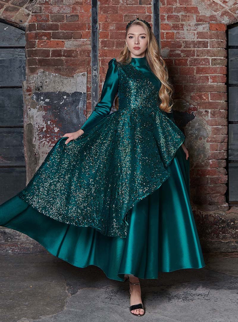 My Dreams Collection Zümrüt Yeşili Efsa Abiye Elbise