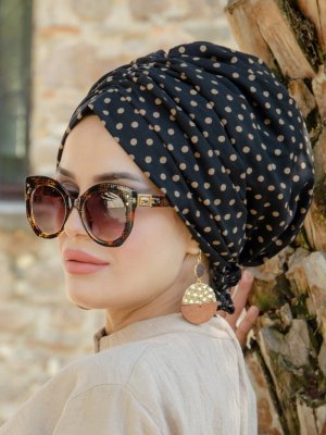 AİŞE TESETTÜR Siyah Vizon Desenli Tokalı Bone