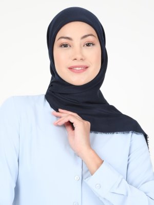 Zen İpek Lacivert Pano Jakar Kesik Eşarp