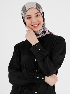 Julia Lauren Bordo Dijital Twill Eşarp