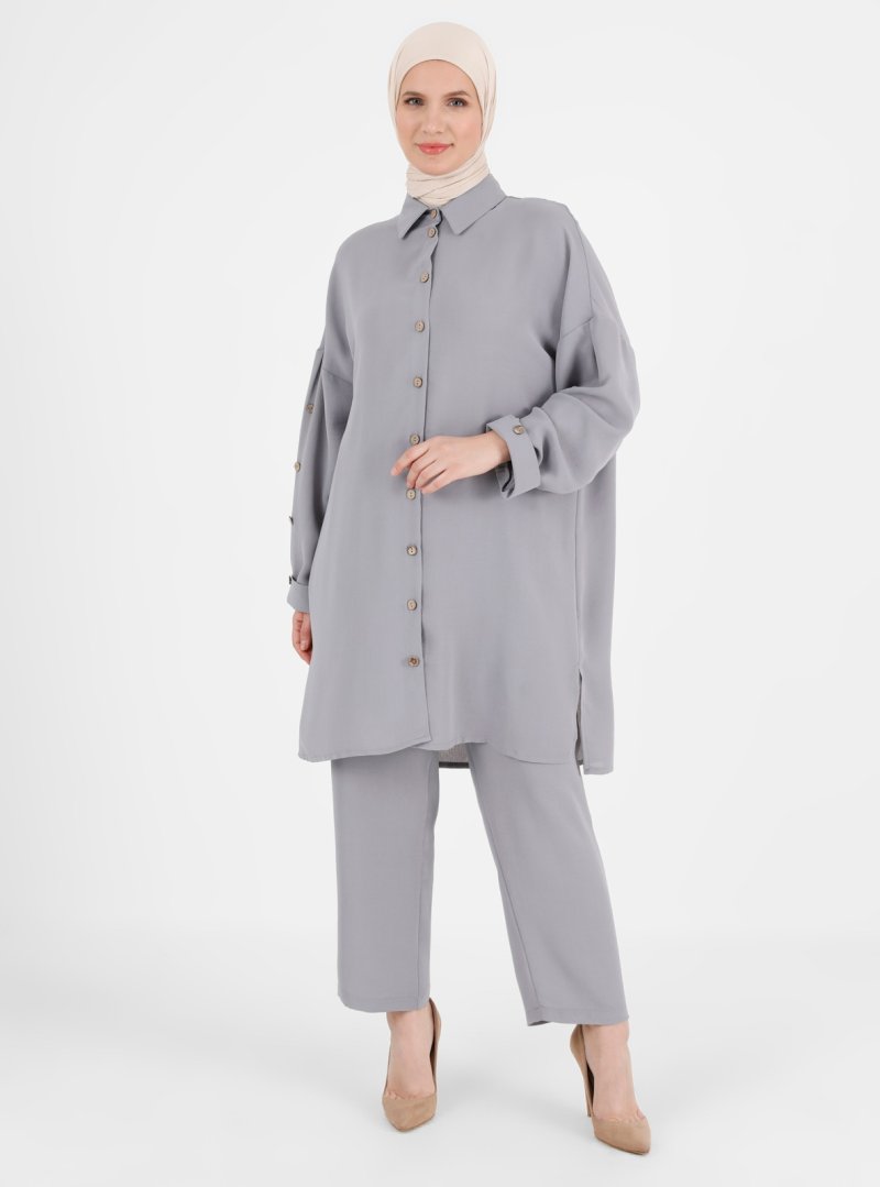 Butik Miray Gri Tunik & Pantolon İkili Takım