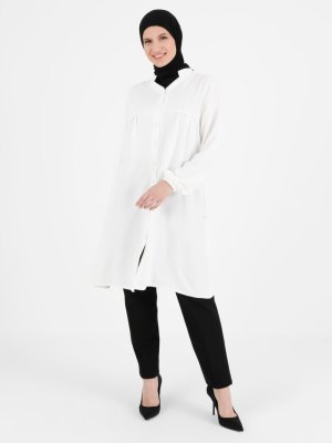 GELİNCE Beyaz Düğme Detaylı Büyük Beden Tunik