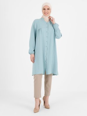 GELİNCE Turkuaz Düğme Detaylı Büyük Beden Tunik